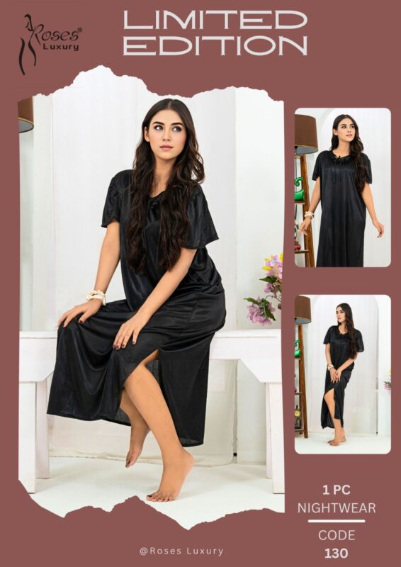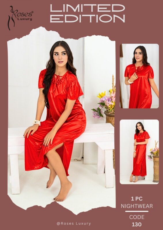 Satin Silk Nightgown – Loose Fit with Gathered Neckline 130