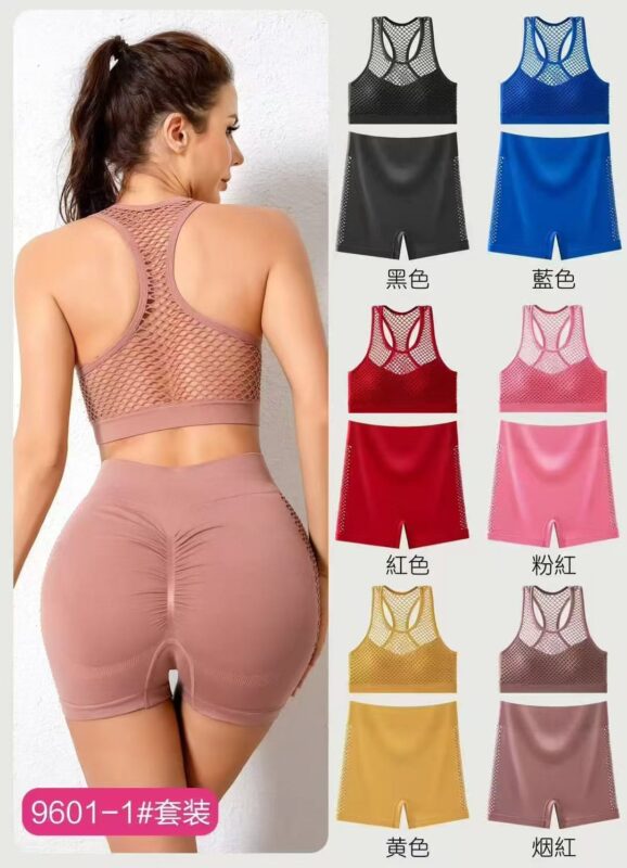 Mesh-Back Gym Suit – Sports Bra & High-Waisted Shorts 9601