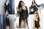Unveil timeless elegance with this black lace lingerie set featuring a sheer robe, strappy bra, and matching panty. Designed for confident styling and romantic evenings, this ensemble blends sensuality with sophistication.