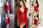 3 Pcs Lace Sheer Nightwear Set – See-Through Dress with Matching Robe 1053
